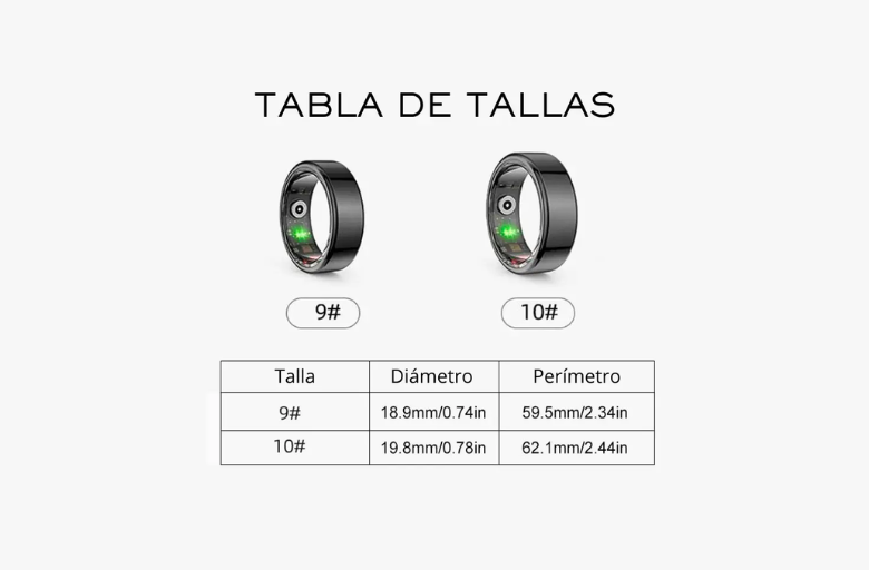 El Anillo Inteligente Techno Pro está disponible en dos tallas para adaptarse cómodamente a diferentes tamaños de dedo: